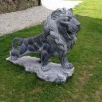 Das Skulpturenpaar, das Löwen in voller Figur darstellt, wurde im 20. Jahrhundert aus einem einzigen Block belgischem schwarzen Marmor gefertigt. Es handelt sich um dekorative Werke von schöner Größe und sehr dekorativ, geeignet für die Aufstellung in Innen- und Außenbereichen von Wohnungen, Villen, Palästen und Gärten. Sie können auch nebeneinander in einem Eingang als Willkommensfiguren platziert werden.