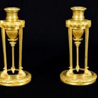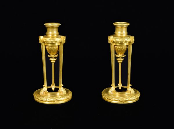 Pair of gilded bronze candlesticks, Louis XVI style, 19th century France