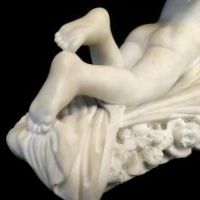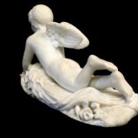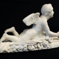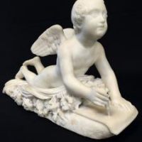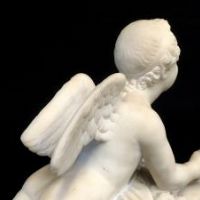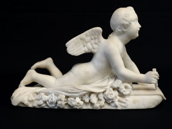 White marble sculpture, signed Pompeo Marchesi, Cupid writing, 1840