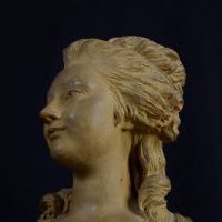 Terracotta bust depicting a noblewoman, marble base, France 19th century