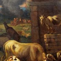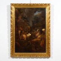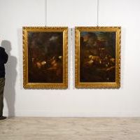 The two works presented here, and therefore executed during his Italian stay, fit well into the artist's catalog, which reflects that taste widespread throughout Europe in the 17th century but much appreciated in Rome, exemplarily represented by Giovanni Benedetto Castiglione, Rosa da Tivoli and Johann Heinrich Roos, to whom Van der Leeuw certainly related to then find his own original artistic expression.
