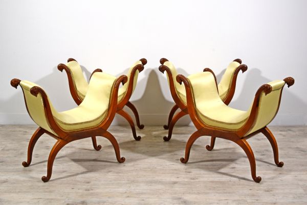 Quattro sgabelli curule in legno, Toscana, primi anni del XIX secolo