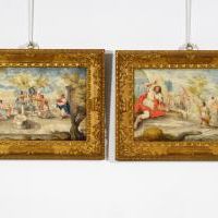 Four paintings depicting biblical subjects, French school, 17th century, tempera on parchment applied to wooden panel.