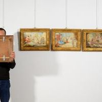 The four parchments, with bright and vivid colors, are very pleasant and decorative. In good condition, they are presented inside Venetian style frames, in carved and gilded wood.