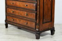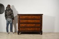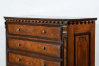 Cassettone canterano barocco in legno di noce intarsiato, Lombardia, fine del XVII secolo