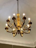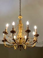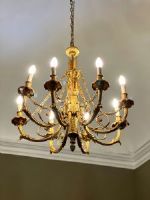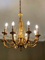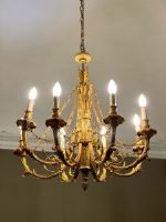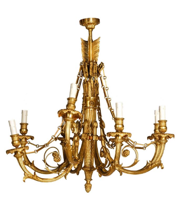 Lampadario a otto luci in bronzo dorato, Francia, stile Luigi XVI, fine XIX secolo