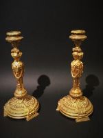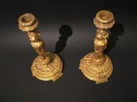 Coppia di candelieri in bronzo dorato, Francia primi anni del XIX secolo