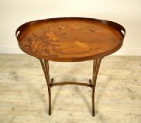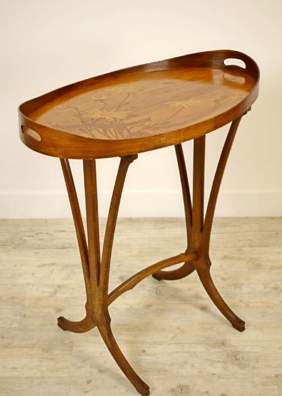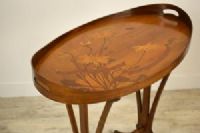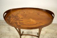 Elegante tavolino a vassoio in legno finemente intarsiato, firmato Emile Gallè (1846-1904), Francia