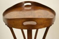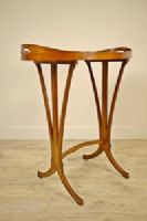 Le due gambe sono composte da tre elementi lignei convergenti in basso, all’altezza di una traversa che ne assicura la stabilità. Si biforcano infine con due piedi ricurvi. L’insieme è molto leggiadro e armonioso, adatto in qualsiasi ambiente, dal salone ad uno studio, o volendo anche in una camera da letto come piccolo piano di appoggio.