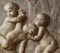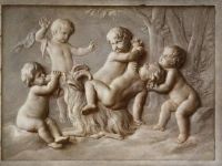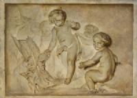 Coppia di dipinti, olio su tela, raffiguranti trompe l’oeil con giochi di putti, attribuibili a Piat Joseph Sauvage (Tournai, 1744 – 1818)