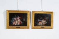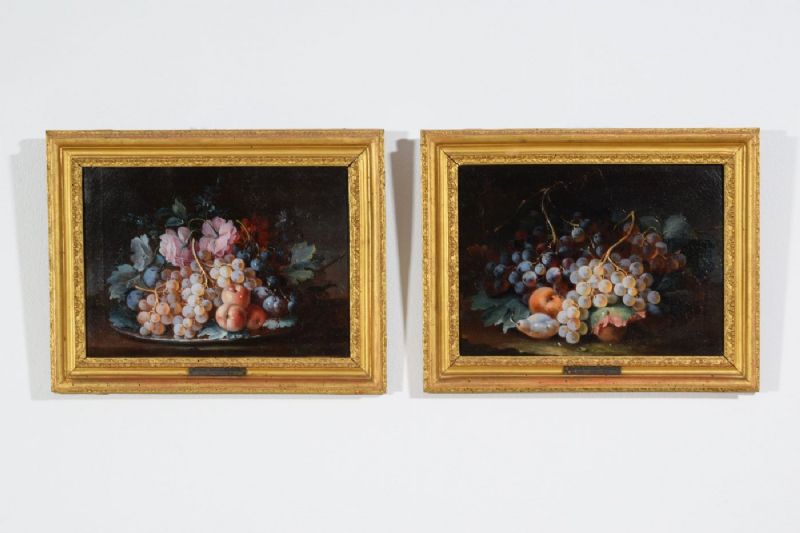 Coppia di dipinti raffiguranti Nature morte con composizione di frutta