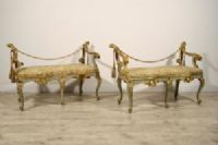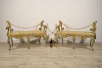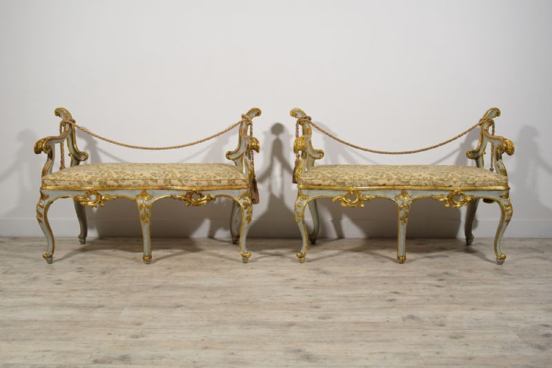 Questa particolare coppia di panche barocche è stata realizzata a Roma nella seconda metà del XVIII secolo.