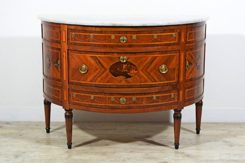 Commode a demi lune neoclassico, Piemonte, fine XVIII secolo