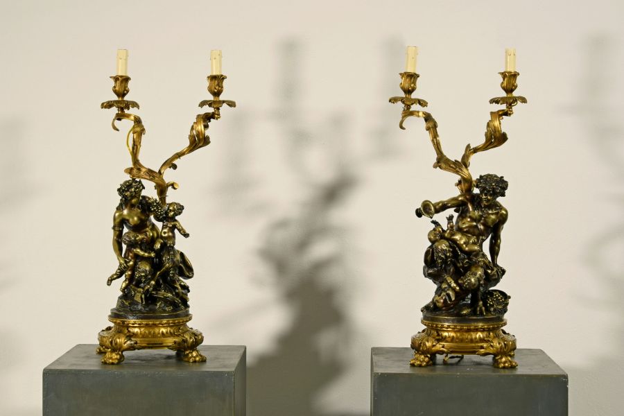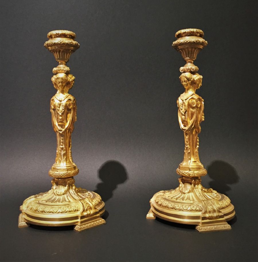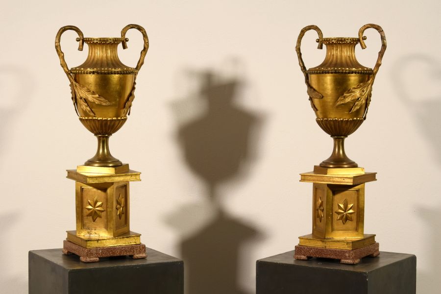 Coppia di candelieri neoclassici in legno intagliato e dorato, Genova, fine XVIII secolo