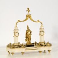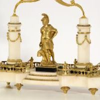 Questo particolare centrotavola è stato realizzato, in marmo bianco e bronzo dorato finemente cesellato, in Francia tra la fine del XVIII secolo e l’inizio del XIX secolo.