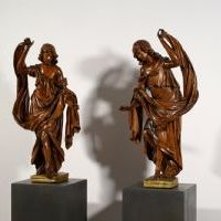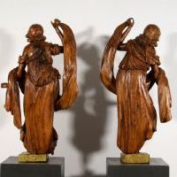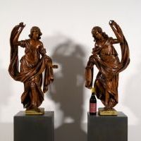 Coppia di sculture barocche in legno di noce, Veneto, fine XVII secolo