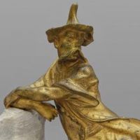 Coppia di sculture in bronzo dorato su base in marmo raffiguranti figure cinesi, Francia, XVIII secolo
