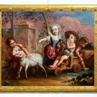 Coppia di dipinti raffiguranti l’Allegoria della Primavera con putti e l’Allegoria dell’Autunno con putti, Vittorio Amedeo Rapos, 1786