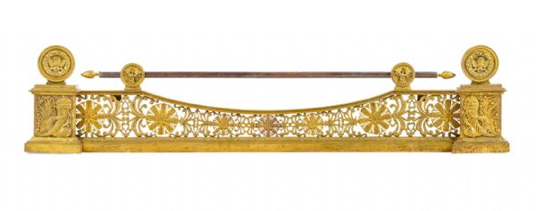 Questa raffinata galerie da camino è stata realizzata in Francia nei primi anni del XIX secolo, in bronzo finemente cesellato e dorato.