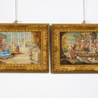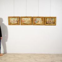 Le quattro pergamene, dalla cromia luminosa e vivace, risultano molto piacevoli e decorative. In buono stato di conservazione, sono presentate all’interno di cornici veneziane in stile, in legno intagliato e dorato.
