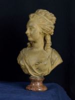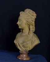 Busto in terracotta raffigurante nobildonna, base in marmo, Francia XIX secolo