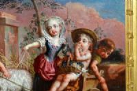 Le due opere sono collegabili con i dipinti di Rapos degli anni 1780-1790 eseguiti per il Palazzo Reale di Torino e confrontabili con altri dipinti a tema allegorico dell’autore conservati presso la Bana Intesa San Paolo di Torino, la Palazzina di Caccia di Stupinigi e la Palazzina Marone Cinzano (oggi sede dell’Unione Industriale di Torino). Di chiara derivazione da prototipi francesi dell’epoca Luigi XV, il genere trattato fin dall'antichità e diffuso anche fra i pittori italiani del Rinascimento sotto forma di baccanali, riproposto volentieri anche dai pittori del classicismo secentesco, conobbe in Francia durante il Settecento un crescente successo. I soggetti proponevano una visione innocente e insieme maliziosa dei rapporti fra i sessi, ed evocavano l'idea di un mondo arcadico e pastorale pieno di grazia e di seduzioni.
