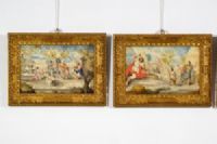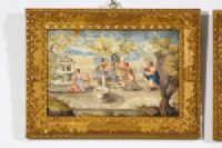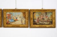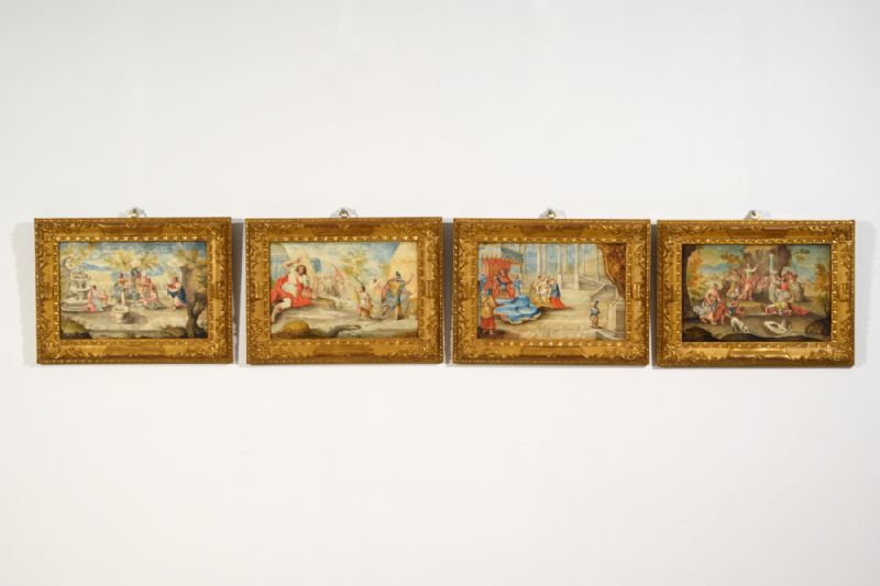 Quattro dipinti raffiguranti soggetti biblici, scuola francese, XVII secolo, tempera su pergamena applicata su tavola lignea