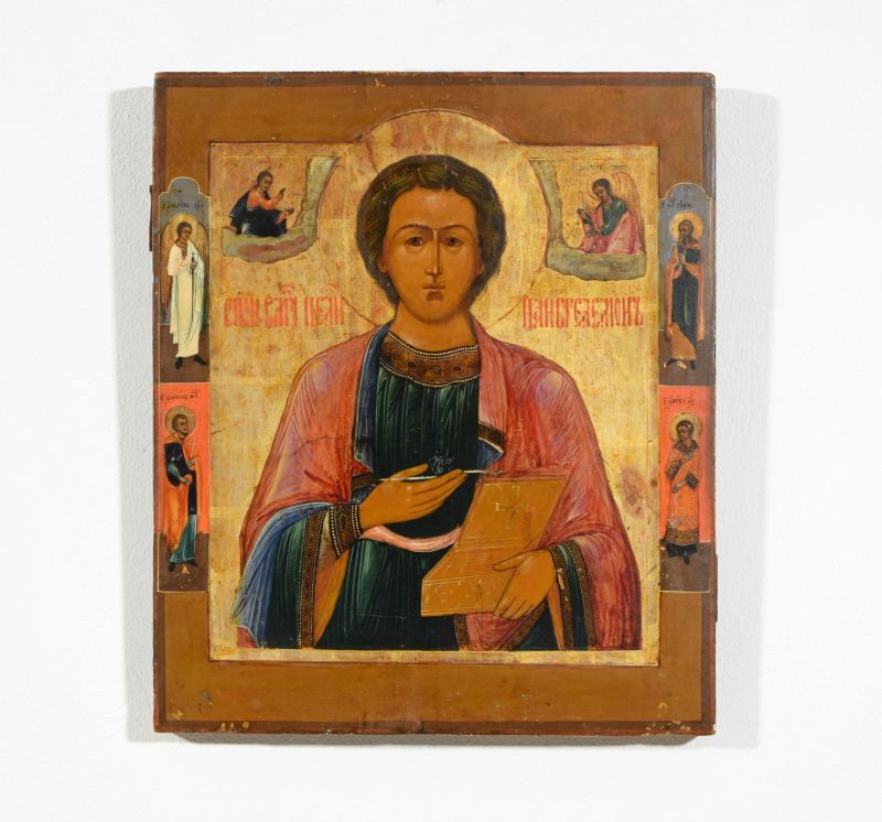 Icona rappresentante San Pantaleone e santi, Russia, XIX secolo